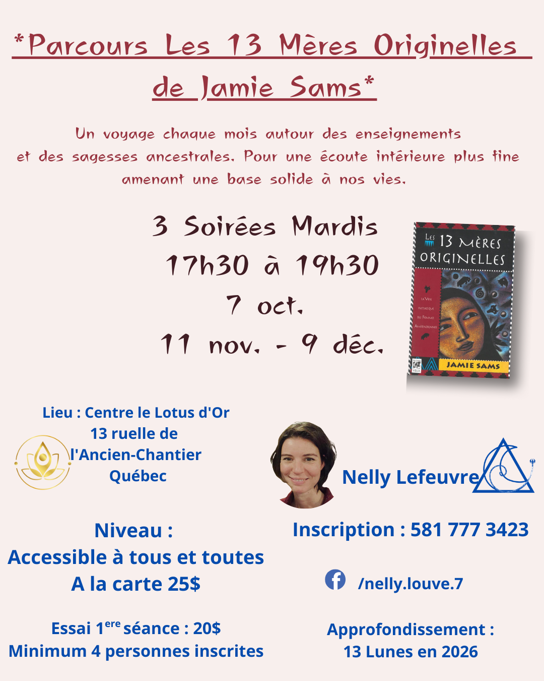 La séance contient des cercles de paroles, des chants, des activités créatives et des enseignements, qui se modulent en fonction des Mères de chaque mois, nous touchons des espaces de compréhension de notre nature humaine et féminine. Les Mères nous accompagnent tout au long de l’année pour déployer nos richesses intérieures.